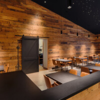 Architecture of a unique, early American Pioneer themed restaurant placed inside of the existing barrel room at Coppola’s Virginia Dare Winery. 3,200 s.f of indoor space and 2,500 sf of additional outdoor seating, designed in conjunction with Coppola’s talented and innovative design team and built by FDC Construction. The restaurant opened in Fall of 2016.