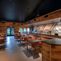 Architecture of a unique, early American Pioneer themed restaurant placed inside of the existing barrel room at Coppola’s Virginia Dare Winery. 3,200 s.f of indoor space and 2,500 sf of additional outdoor seating, designed in conjunction with Coppola’s talented and innovative design team and built by FDC Construction. The restaurant opened in Fall of 2016.